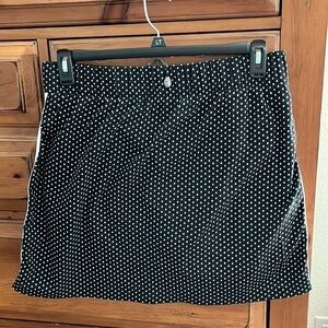 NWOT Talbots Women’s black and white skort with polka dots and stripes down side, size large.
