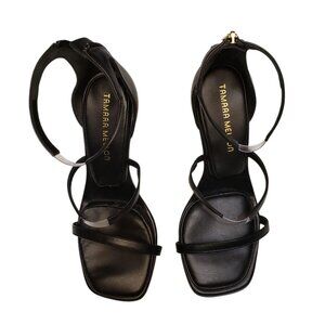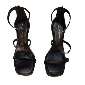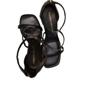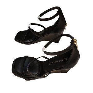 NWOT Tamara Mellon Black Leather Wedge Sandals Women's Size 8.5
