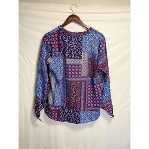 NWOT Tantrums Womens Geometric Floral All Over Print V-neck Tunic Blouse Medium.