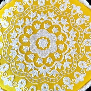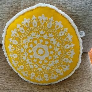 NWOT Target Yellow & White Tufted & Embroidered Feather Pillow