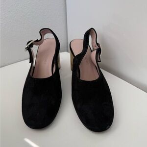 Step out in style with these elegant black slingback shoes. Perfect for any occasion, they offer both comfort and sophistication.