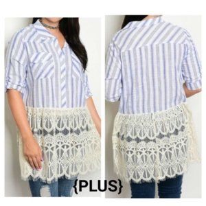 NWOT Tassels N Lace Blue Striped Button Down Tunic
