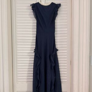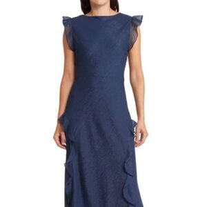 NWOT Ted Baker Laurae Bias Cut Ruffle Gown in Midnight Blue Shimmer