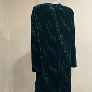 This gorgeous green dress has an attached jacket. It has green sparkles on the front and back. It is lightweight and soft. Check measurements because you don’t have to be petite to wear this. Perfect for weddings, cruises, red carpet black tie affairs or holiday parties. Wearable year round. NWOT.