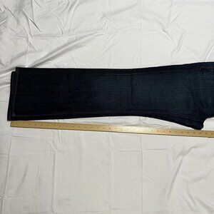 No visible flaws. Waist = 16 inches across, inseam = 30 inches, rise = 10 inches, leg opening = 8 inches.