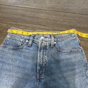 11 1/4" high rise, fitted through the hip and thigh, 15" straight leg opening, 29" inseam.