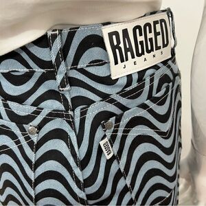 NWOT The Ragged Priest Blue/Black Wave High Waist Straight Leg Jeans -- …