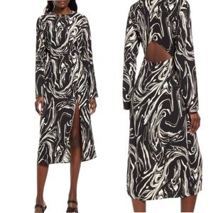 NWOT The marbled print on this Open Edit Long-Sleeve Midi Dress Large