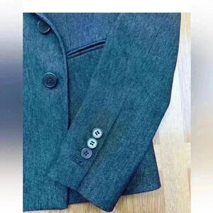 NWOT A double-breasted blazer designed with a slim silhouette in an updated denim fabrication.