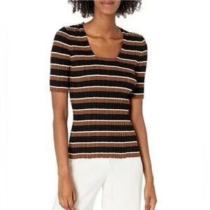 NWOT THEORY women’s stretchy sweater knit top in size large multicolored. This top has only been tried on. It is very stretchy and would easily fit size medium, or large. Please see photos for measurements and details!