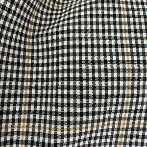 plain weave, no appliqués, checked, high waisted, tapered leg, regular fit, hook-and-eye closure, zipper closure, no pockets, stretch