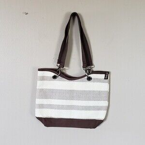 NWOT Thirty One Bag Brown and Cream Colored Woven Double Handled Tote