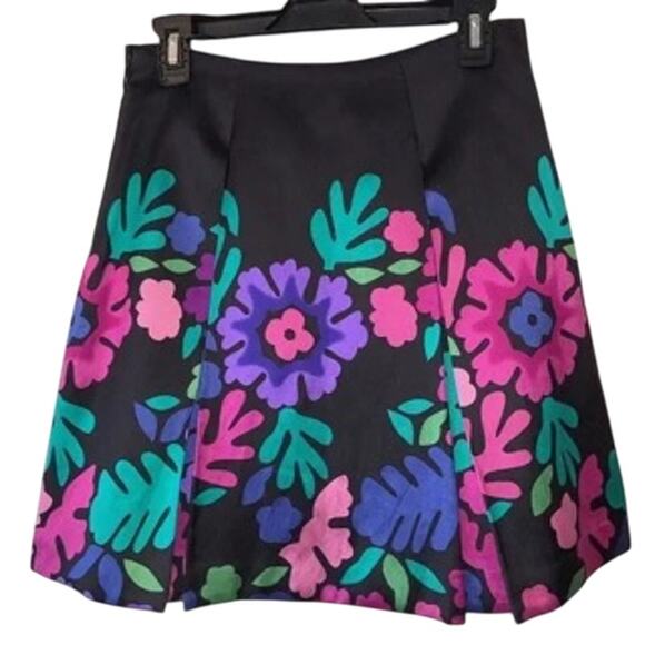 NWOT TIBI - Finished Waistband With Hidden Zipper and Eyelook Left Side Seam - Pleated - Fully Lined - Main Color is Black - Floral Design In Blues, Coral, Purples and Greens - Lining Is Black - Brand New Without Tags - Never Worn - 53% Wool 47% Silk - Lining 100% Acetate - Size 6/Medium - Waist 28" Length 18 3/4"