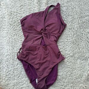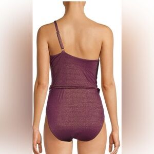 NWOT Time & Tru Godess One Piece Swimsuit Burgundy Metalic Cut Out Padded