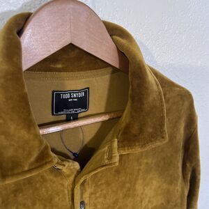 NWOT Todd Snyder Retro Velour Polo Size L Pullover Shirt Piping Mustard Brown
