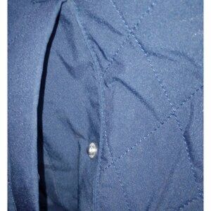 Stay warm and stylish in this Tommy Hilfiger women’s quilted jacket, size XL, in navy blue. Features button front closure, logo accents, and functional pockets. Mid-length cut with soft polyester shell and lining. Great for casual wear, travel, or layering.