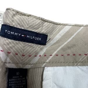 Tommy Hilfiger Shorts Tan Striped Belted, Pockets, Linen Blend