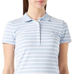 NWOT Tommy Hilfiger Slim Fit Stretch Collared Polo Dress Blue White Stripe XS