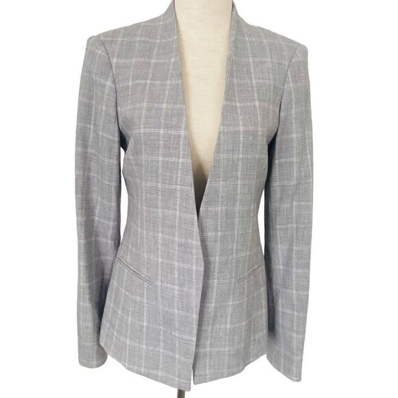 NWOT Tommy Hilfiger Womens Sz 2 Gray Plaid Blazer Lined Long Career Wear, f23.