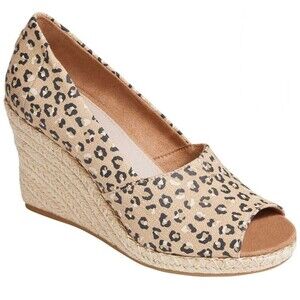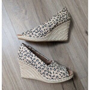 NWOT Toms Size 6 Michelle Peep Toe Leopard Print Espadrille Wedge Pumps