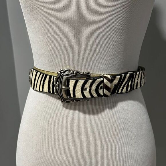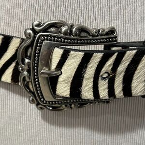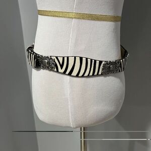 NWOT Topshop Zebra Haircalf Black White Silver-toned Buckle Leather Belt XS/S