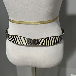 Topshop Zebra Haircalf Black White Silver-toned Buckle Leather Belt Size XS/S