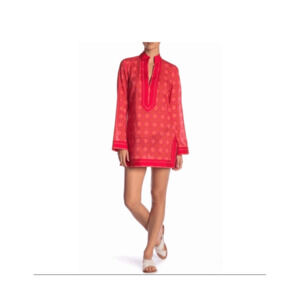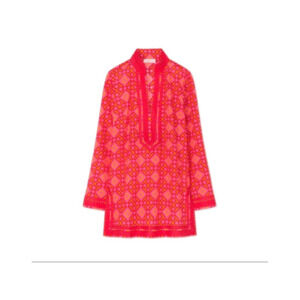 NWOT Tori Burch Honeysuckle Cotton Resortwear Printed Red Pink Tunic