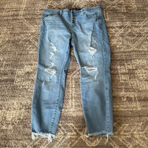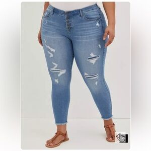 NWOT Torrid Bombshell Skinny Stretch High-Rise Destructed Jeans Fray Hem 16S