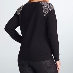 NWOT. French terry fabric, ribbed trim, silver, hand-beaded embellishments at shoulders, designed exclusively for Torrid by Rebel Wilson. Size 0.