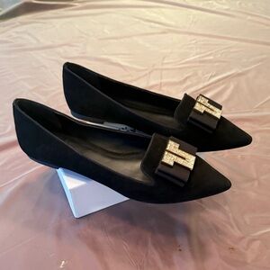 NWOT Tory Burch Black Suede Loafer Flats Bow and Jewel T Logo Size 9 MSRP $525