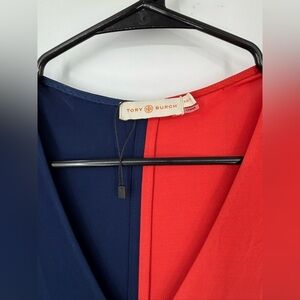 NWOT Tory Burch Color Block Asymmetrical V-Neck Dress Orange Blue XS