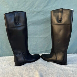 NWOT Tory Burch Double T Riding Black Leather Boots Women Sz 5 1/2M Knee Riding