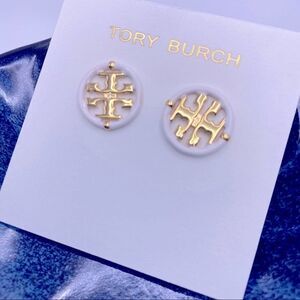 NWOT Tory Burch Gold Double T With White Enamel Trim Round Earrings