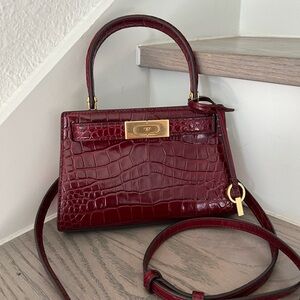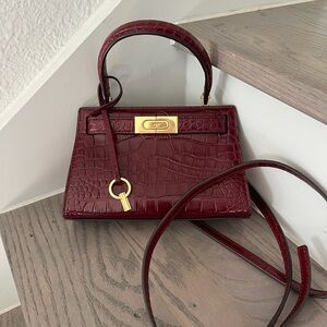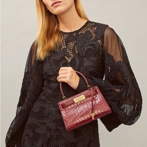 NWOT Tory Burch Mini Lee Radziwill Croc Embossed Leather Satchel