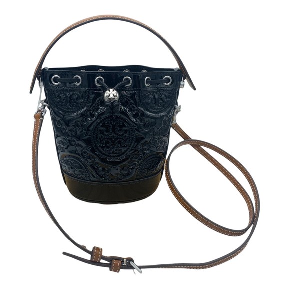 NWOT Tory Burch Mini T Monogram Puffy Patent Leather Bucket Bag Crossbody Strap