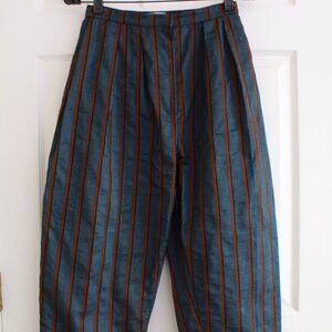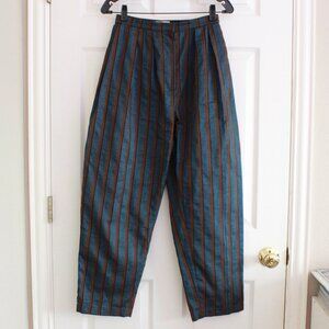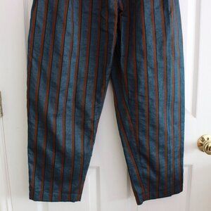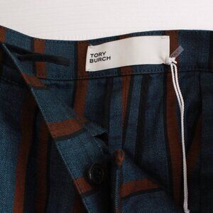 NWOT Tory Burch Runway Stripe Canvas Linen Blend Pants Runway Teal Rust Barrel Balloon Fit