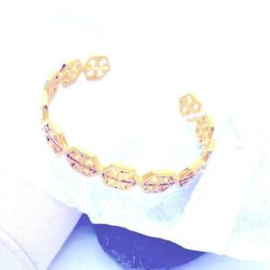 NWOT Tory Burch T Gold Hexagon Cuff Bangle Bracelet
