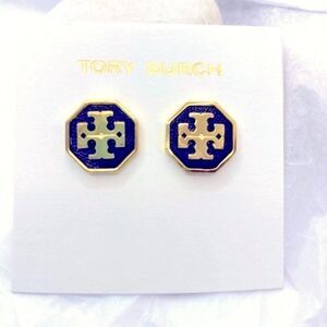 NWOT Tory Burch Black, Gold Logo Octagon Stud Earrings
