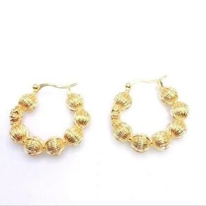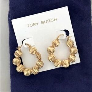 NWOT Tory Burch Gold Roxanne Fluted Bead Hoop Earrings