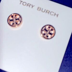 NWOT Tory Burch Rose Gold Logo Miller Stud Earrings
