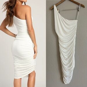 NWOT Total Appeal White Ruched One-Shoulder Bodycon Midi Dress