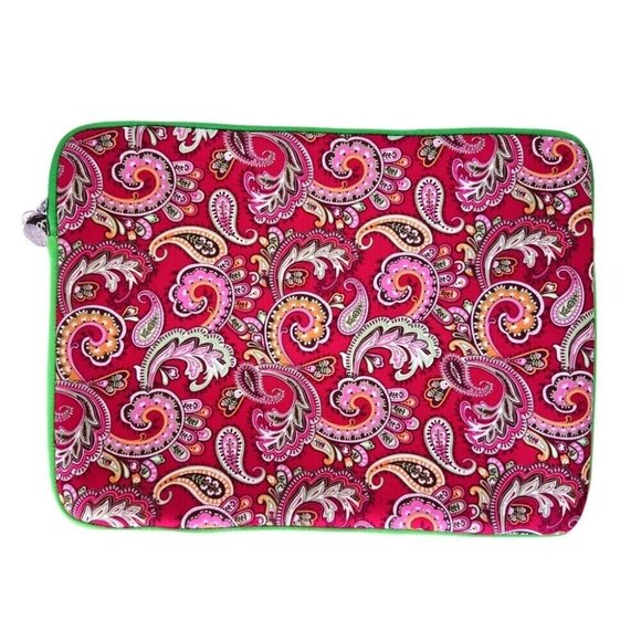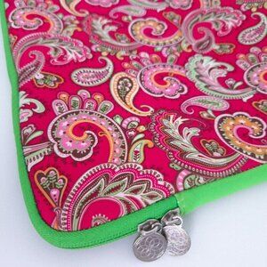 NWOT Tri Coastal Fuchsia Pink Green Paisley Neoprene 13"/14" Laptop Sleeve Pouch