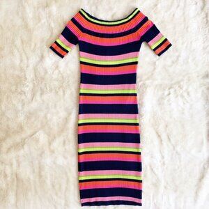 Trina by Trina Turk "Necha" Multi Color Ribbed Off the Shoulder Sweater Dress