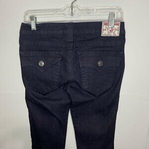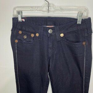 NWOT True Religion 26x35 Disco Julie Low Rise Bling Tuxedo Stripe Skinny Jeans. These jeans have crystals down each leg. They also have flap back pockets.