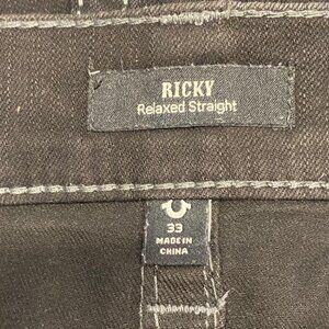 NWOT True Religion Ricky Flap Relaxed Straight Fit Jeans Men's 33 Black Denim