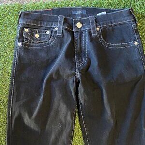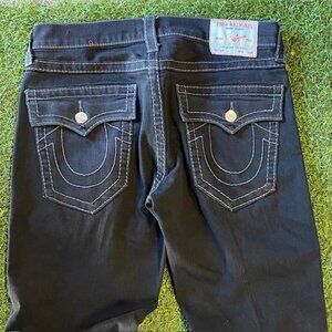 This is a pair of NWOT True Religion Ricky Flap Relaxed Straight Fit Jeans Men's 33 Black Denim. These jeans are NWOT and in excellent condition.