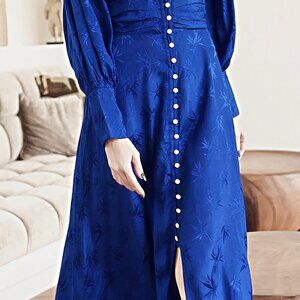 The rich royal blue hue makes this dress truly unforgettable—vivid, regal, and perfect for making an entrance. Style it with strappy heels and soft curls for a romantic evening look, or pair with delicate flats and statement earrings for an elevated daytime affair.