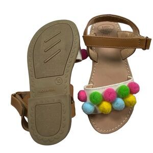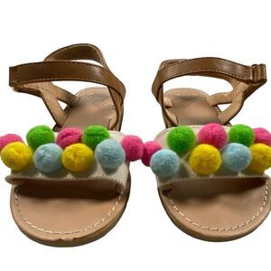 NWOT Tucker + Tate Toddler Girls Brown Sandal with Colored Pom Poms - Size 10M