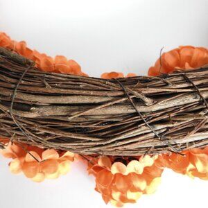 NWOT Twigs Faux Silk Orange Flowers Thanksgiving Wreath Fall Decor 16"
