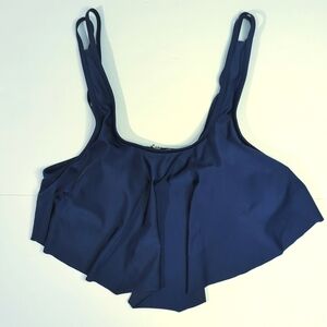 NWOT Two Piece Swim Suit- Navy Blue Flowy Top And Tropical Leaf Print Shorts-XL